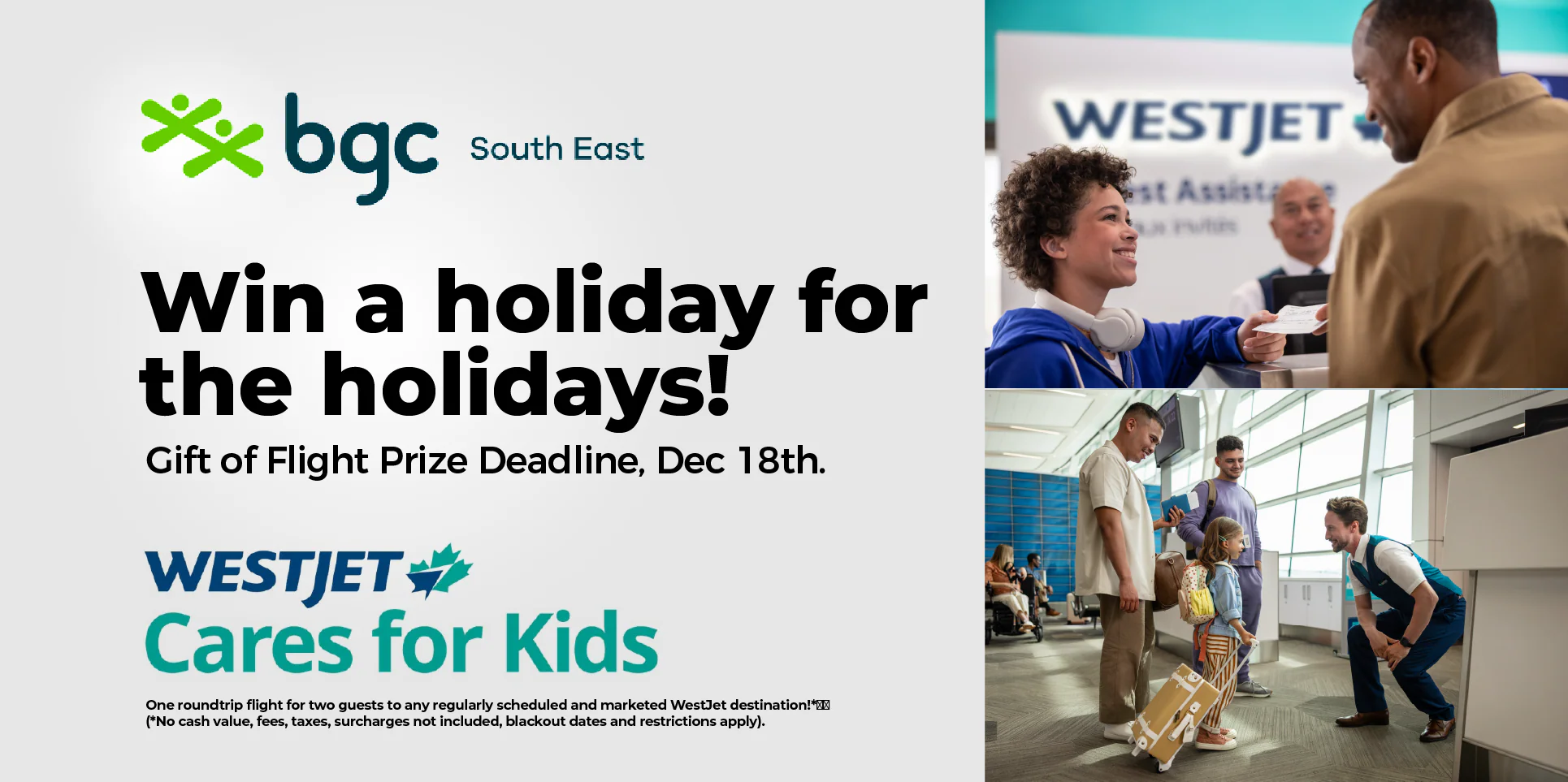 One roundtrip flight for two guests to any regularly scheduled and marketed WestJet destination!*